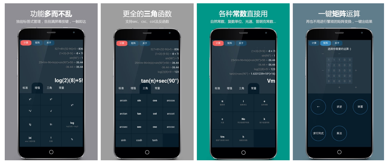大学假期里独自开发的高级计算器APP。当时很少有APP支持这么多高级功能,尤其是矩阵计算。